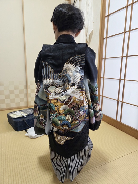 後日、「最後まで笑顔で普段通り過ごすことができました!やはり着付け方が良かったからだと感謝しています。」と、お写真を添えてお手紙をいただき、本当に嬉しかったです。お写真からも伺えましたが、楽しい一時を過ごせたようでホッとしました。お写真もお手紙も本当に励みになります。ありがとうございました。